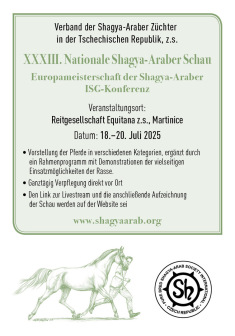 Der tschechische Shagya-Araberzuchtverband grüsst alle Shagya-Araberzüchter und Freunde und würde sich freuen, wenn möglichst viele an